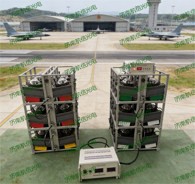 全套的野战保障点助航灯光系统由6个灯架,36只LED野战点助航灯、电源控制器、灯光控制器组成。